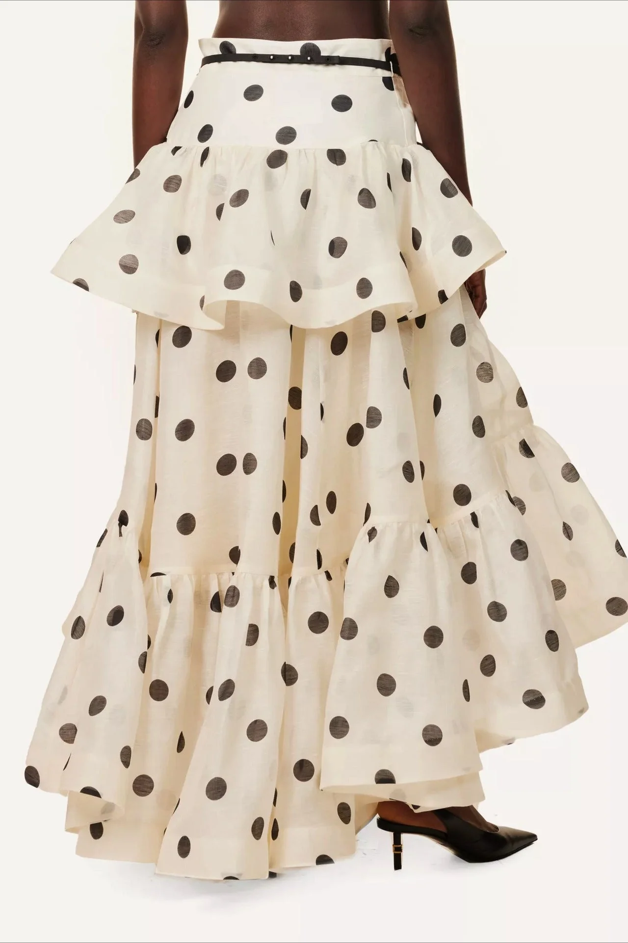 -70%Tiered Ruffle Polka Dot Midi Skirt—