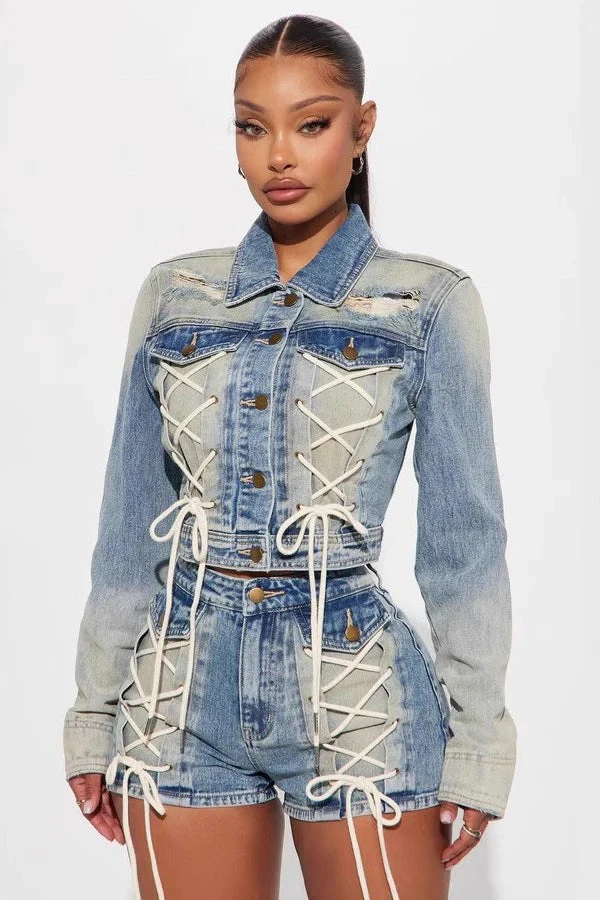 Trendy Jacket Two Piece Shorts Set